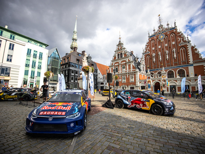 Ieskandinot nedēļas nogalē Rīgā gaidāmos divus pasaules rallijkrosa čempionāta posmus, 1. septembrī Rātslaukumā notika krāšņa dalībnieku un sacensību auto prezentācija, kas noslēdzās ar visu čempionāta dalībnieku un viņu spēkratu parādes braucienu pāri Akmens tiltam.