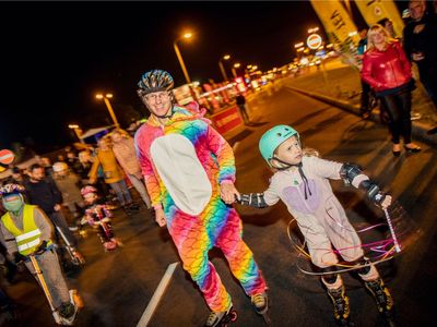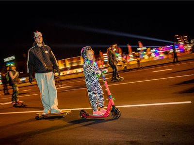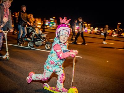 Nakts brauciena starts un finišs atradās pie tirdzniecības centra "Mols", bet 4 km garā trasē veda pa Krasta ielu no Salu tilta līdz Dienvidu tiltam. Dalībnieki drīkstēja braukt neierobežotu apļu skaitu, bet tikai ar skrituļslidām, skrejriteņiem un skrituļdēļiem.